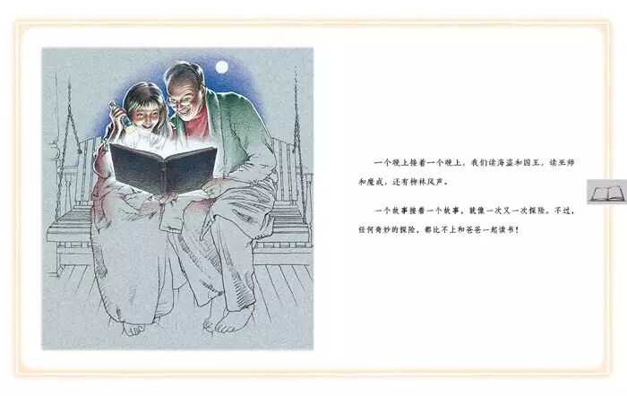 小时候,每天晚上睡觉前,我和爸爸都会读一本书。有时候,我们和书里那只戴高帽的猫一起窝在软软的沙发里,有时候和玩具们一起坐在壁炉旁,有时候就只有我和爸爸两人,我们会来到幽静的星空下读书。随着年纪渐长,阅读的主题在变化,我和爸爸的距离也越来越远。可是,那个软软的沙发一直陪伴着我们,我和爸爸的阅读也从未停止。后来,我成为了母亲,也和孩子们挤在那个软软的老沙发里,重温那些陪我走过童年的书。