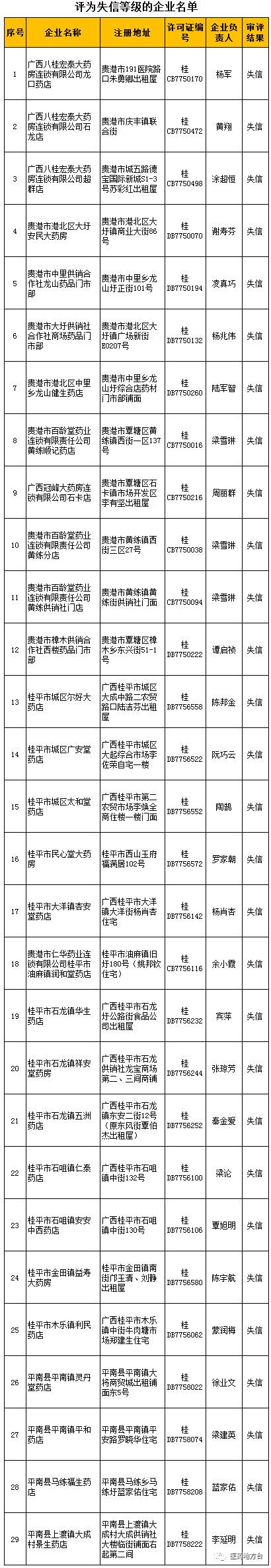 3月14日,广西贵港市药监局发布关于药品零售企业药品安全信用情况的公告。依据《贵港市药品零售企业药品安全信用分类管理办法》,该局对全市2016年度正常经营的975家药品零售企业药品安全信用情况进行综合评定。其中,评为守信企业892家,评为警示企业54家,评为失信企业29家。