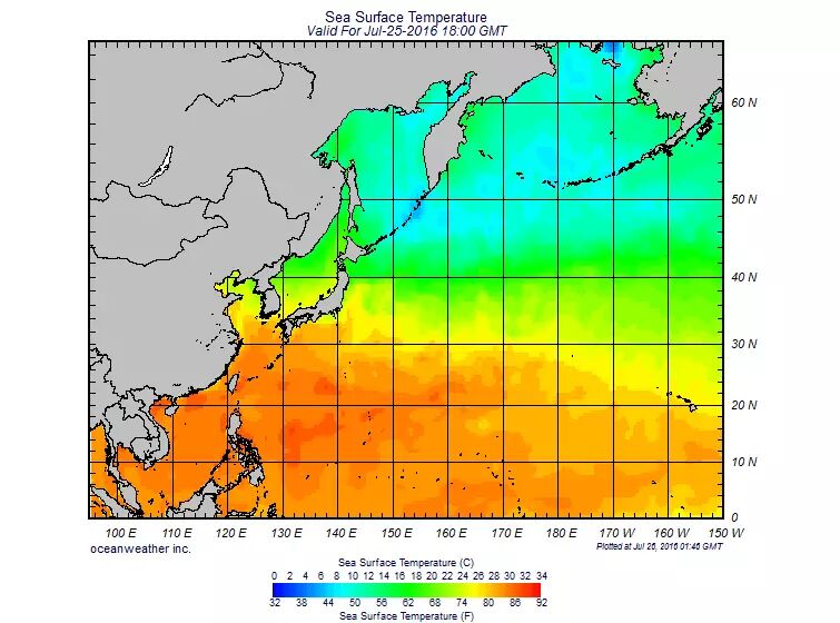 NOAA提供的表层海温图显示,26号菲律宾以东洋面、台湾以东洋面、南海几乎全部超过30度,菲律宾以东甚至有32度以上区域;东海大部超过29度。如此大范围的高海温情况,非常罕见