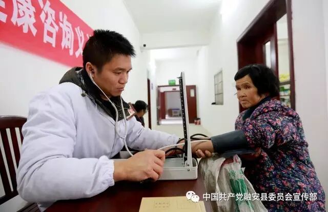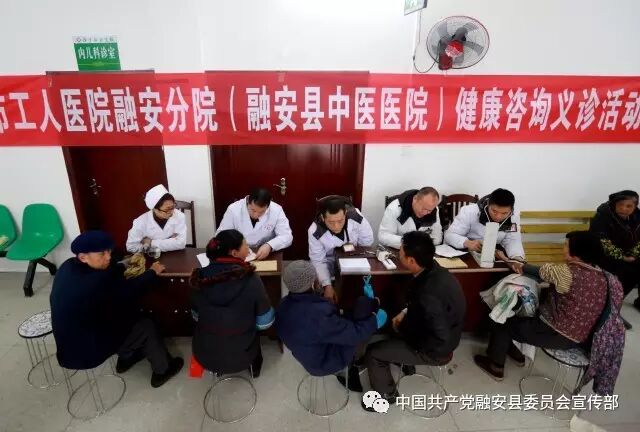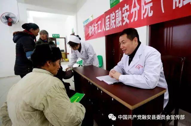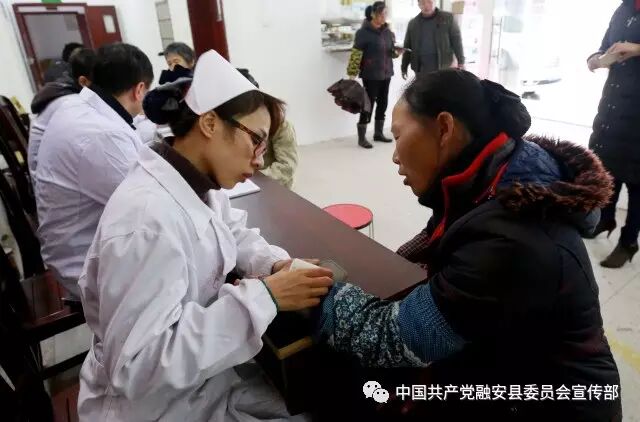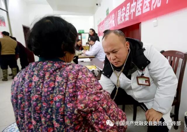 1月11日,在广西融安县沙子乡卫生院,医务工作者给当地群众义诊。