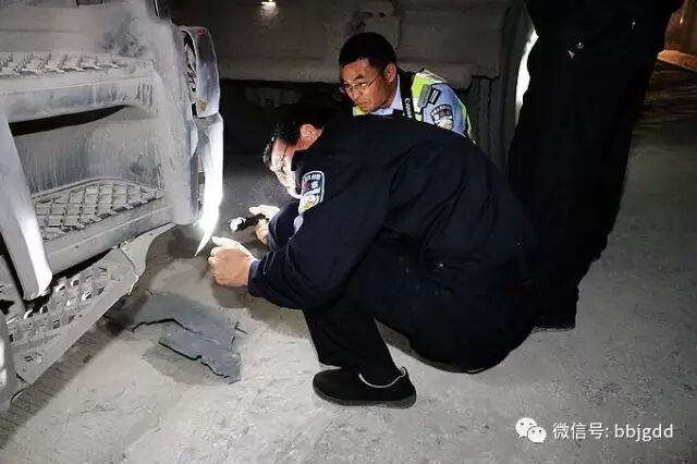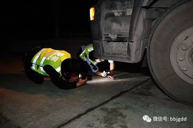 两广警方按照指令,分头行动,各自迅速进入联检地点路段,像大海捞针般地一辆一辆地认真排查肇事车辆。14日凌晨4时多,在黑茫茫的夜幕中,执勤民警已连续排查了6个多小时,早已困倦重重,但他们仍然坚持着,不放过任何一辆车辆,任何一个线索。功夫不负苦心人,把守在221省道上的广东廉江市交警大队塘蓬中队、石岭中队的民警传来喜讯:他们先后排查出四辆过往大货车轮胎等位置均粘有明显肉浆、血迹,都应为肇事嫌疑车辆!办案组民警迅速前往廉江市把肇事嫌疑车辆及驾驶人一同押了回来。