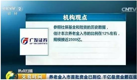 广发证券认为,参照社保基金和险资的历史数据,估计本次养老金入市的比例在12%左右,规模接近2500亿。
