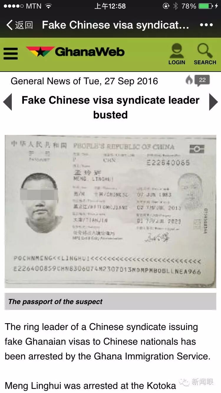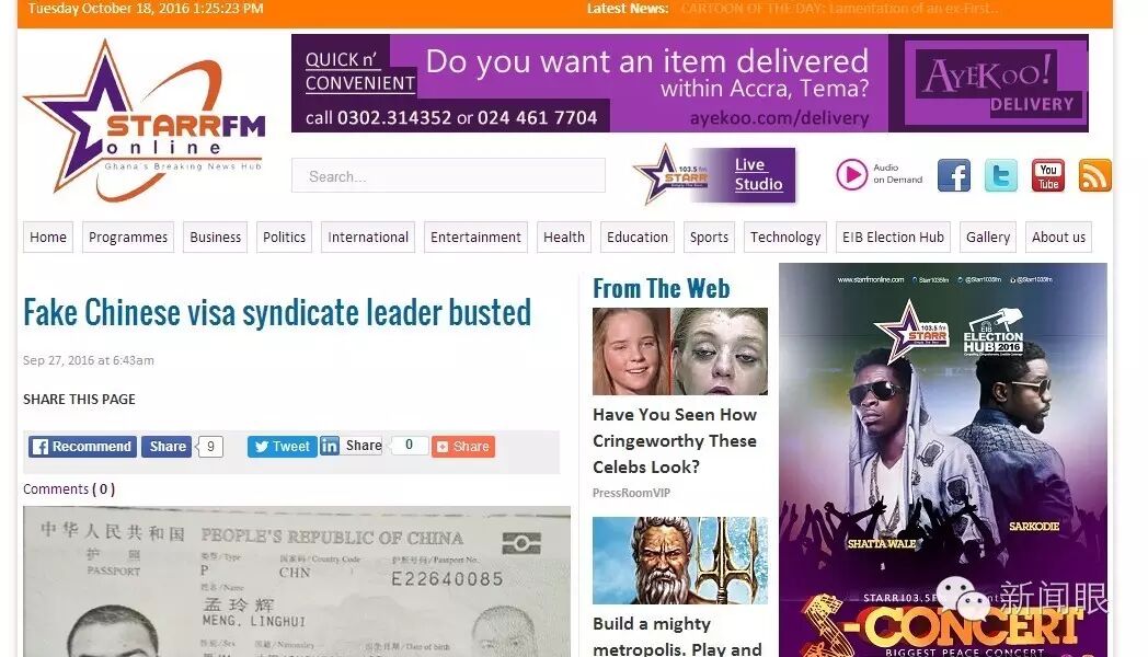 加纳时间9月27日Ghana Web 爆出假签证首脑孟玲辉被抓的新闻,该新闻在中国圈传开后,当事人孟玲辉已于9月30日开始着手解决“问题新闻”事件。加纳时间10月15日,当本报记者打开STARR 103.5 FM和Ghana Web两家网站时,发现网站仍旧没有撤销关于孟玲辉的报道。
