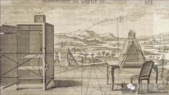 诚如马丁·肯普所说的,“自文艺复兴以来,历史学家们似乎不太愿意对艺术家使用视觉装置的状况进行调查和研究。”[2]事实是,一方面我们经验中的西方艺术史,基本还是由古希腊时期“短缩法”(foreshortening)如何被发现,到了文艺复兴又是如何“进化”为一套严格的“透视法”,然后,进入19世纪,“透视法”又是如何被瓦解……这样一种叙事所建构起来的;另一方面,从柏拉图“洞穴”理论、亚里士多德的“针孔观象仪”,到中世纪罗杰·培根(Roger Bacon)的“三层针孔暗箱”,文艺复兴时期布鲁内莱斯基的“透视仪”、阿尔贝蒂的“衍射暗箱”,直至17世纪开普勒的“折光学”、笛卡尔的“屈光学”以及暗箱的普遍应用,再后来就是19世纪初摄影术的发明[3],等等,对于这样一部视觉技术史,我们似乎也并不陌生。