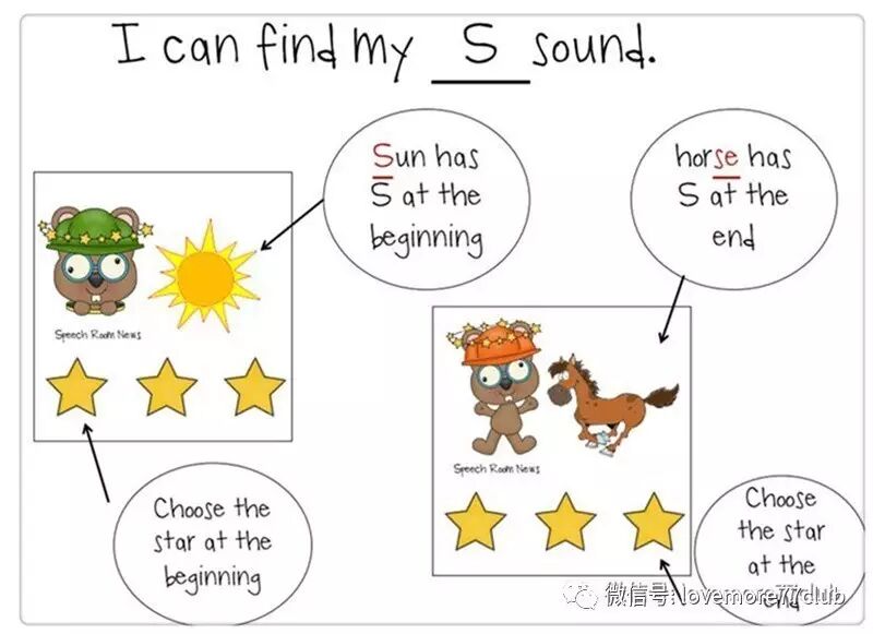 玩法是根据字母S在单词中的位置,让小朋友练习发音。