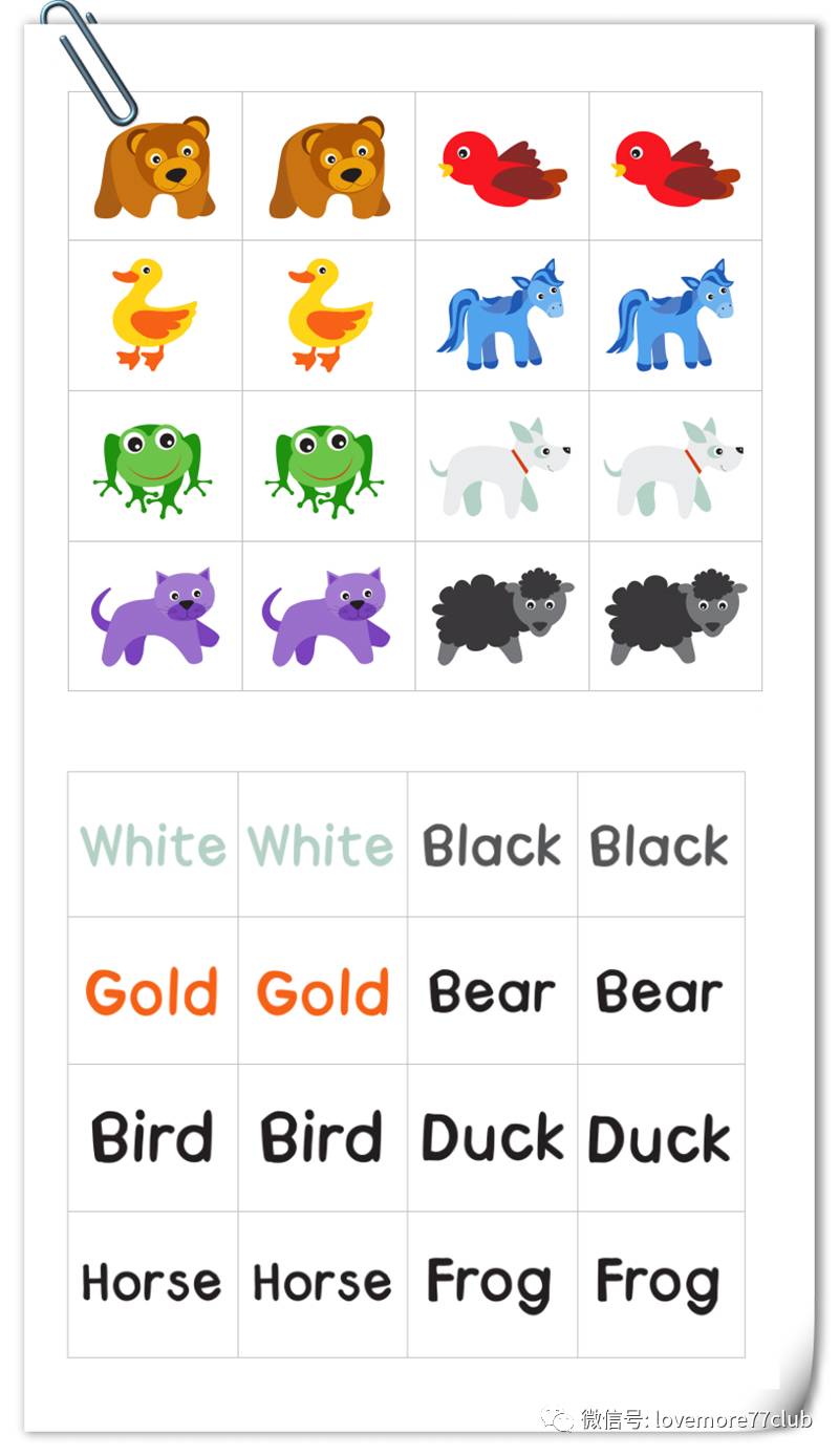 卡尔爷爷的《Brown bear,brown bear,what do you see?》,小朋友一定读过无数遍了。熟悉的内容可以帮助小朋友减少思考时间,玩起来更有成就感哦!并且单词、颜色都全了!