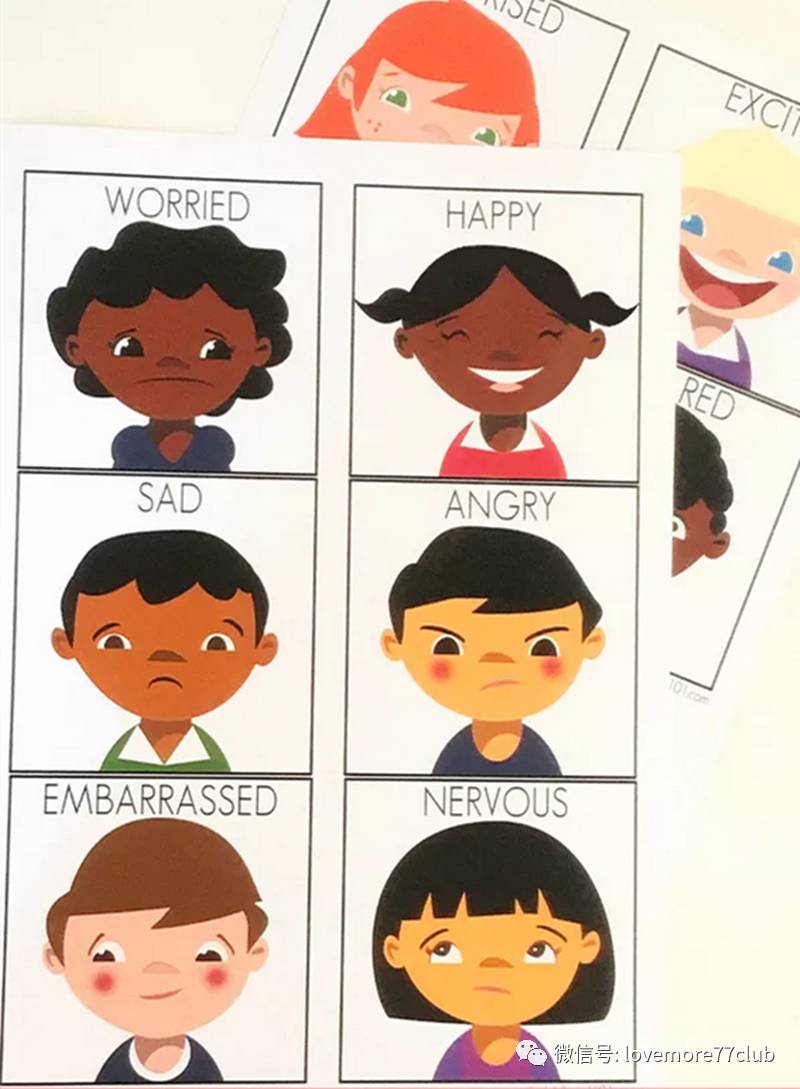 用同样的玩法,还可以帮小朋友记单词。我很开心,我很兴奋,我很悲伤......这些绘本中和日常生活里最常用的单词,是一定要记住的哦!