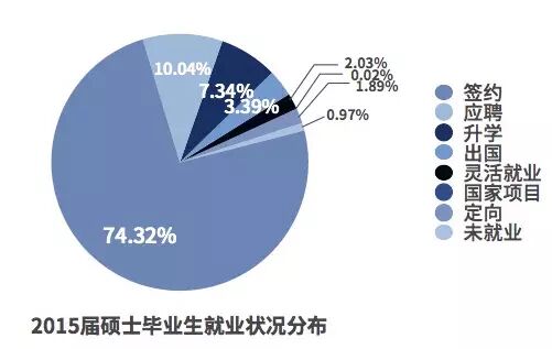 2015届硕士毕业生总人数为4333人(男生2324人,女生2009人)。截至12月10人,2015届硕士毕业生就业人数为4291人,就业率为99.03%。