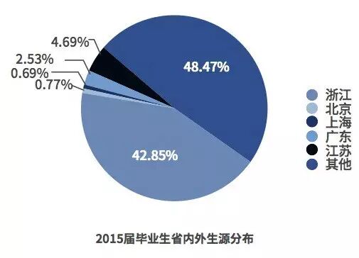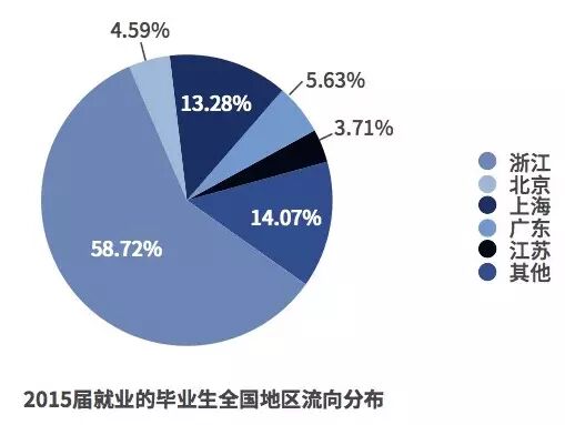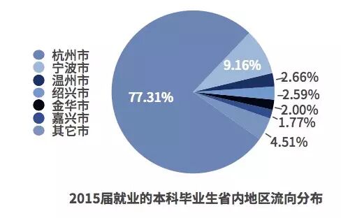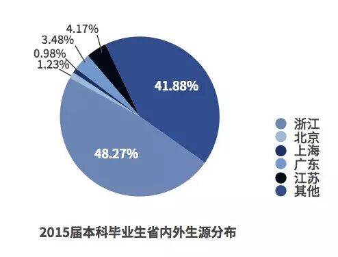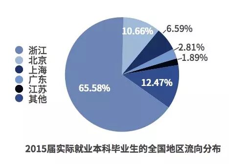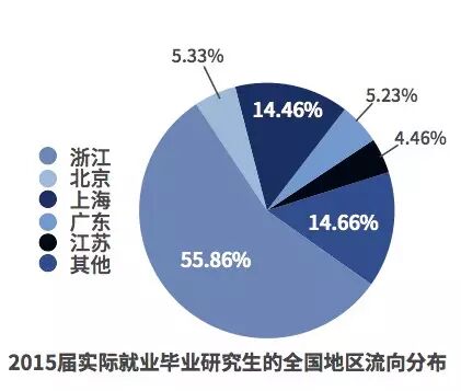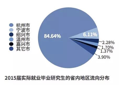 2015届毕业研究生在浙江省内就业的共有2767人,占55.87%。而在浙江省就业的人中,硕士和博士毕业生在杭州市的就业比例分别高达83.41%和88.54%。