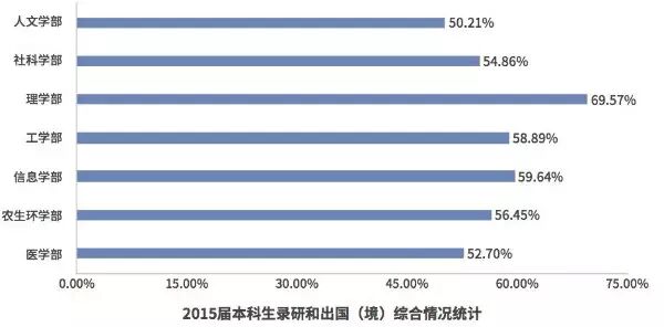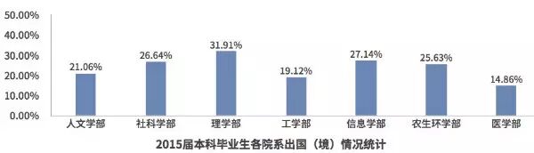 2015届共1268名本科毕业生出国(境)留学,占毕业生总数的24.35%,出国(境)率与上年持平。