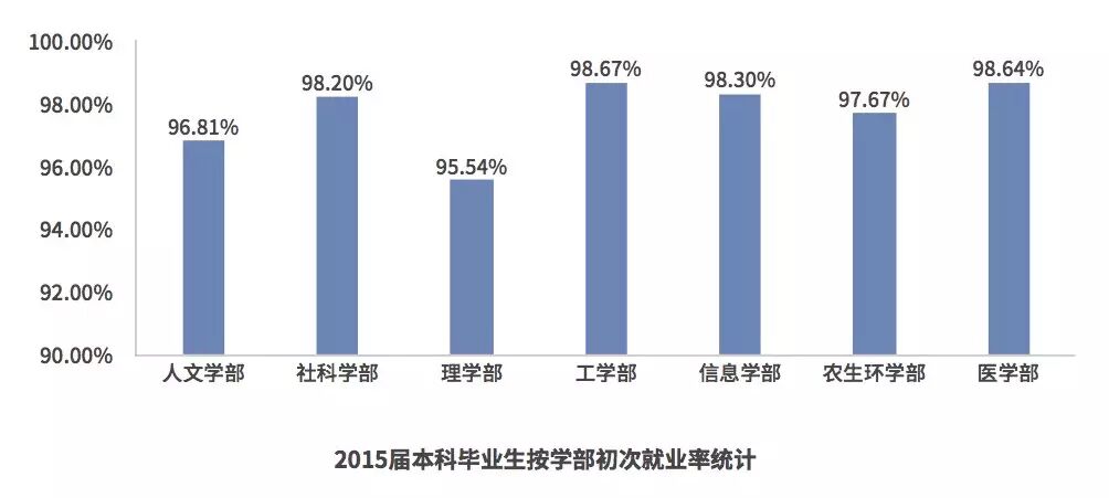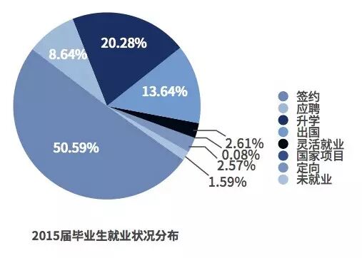 截至2015年12月10日,本科毕业生有1768人在国内升学,1268人出国(境),2063人实际就业,109人未就业,初次就业率达到97.91%