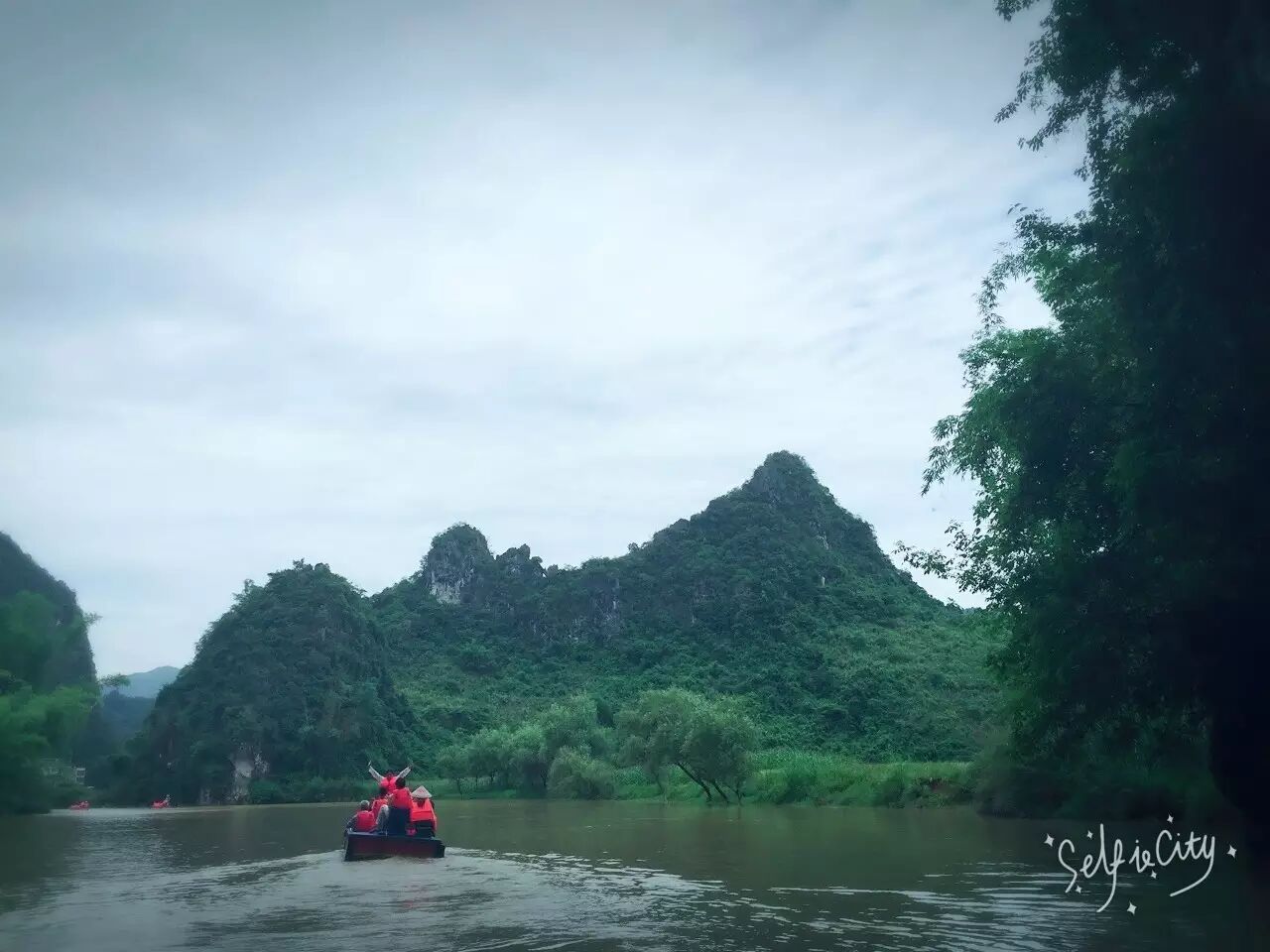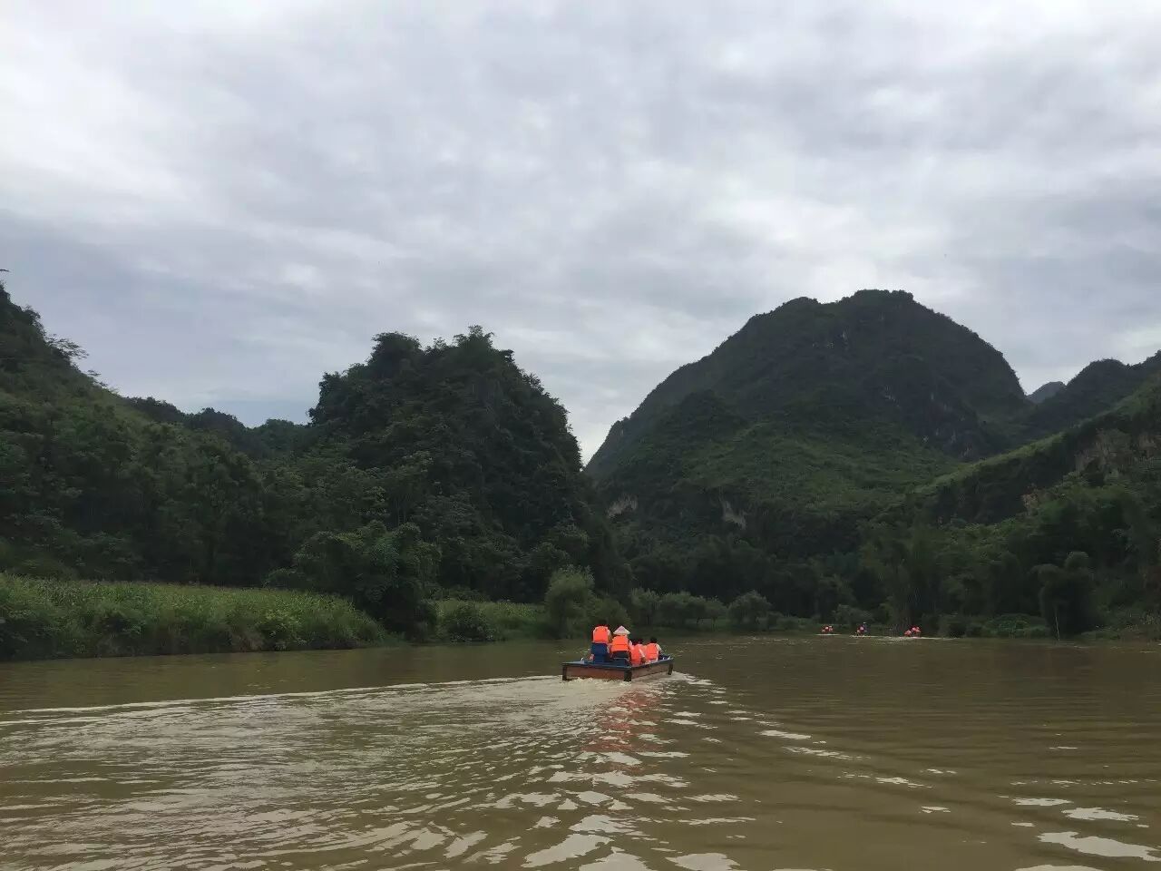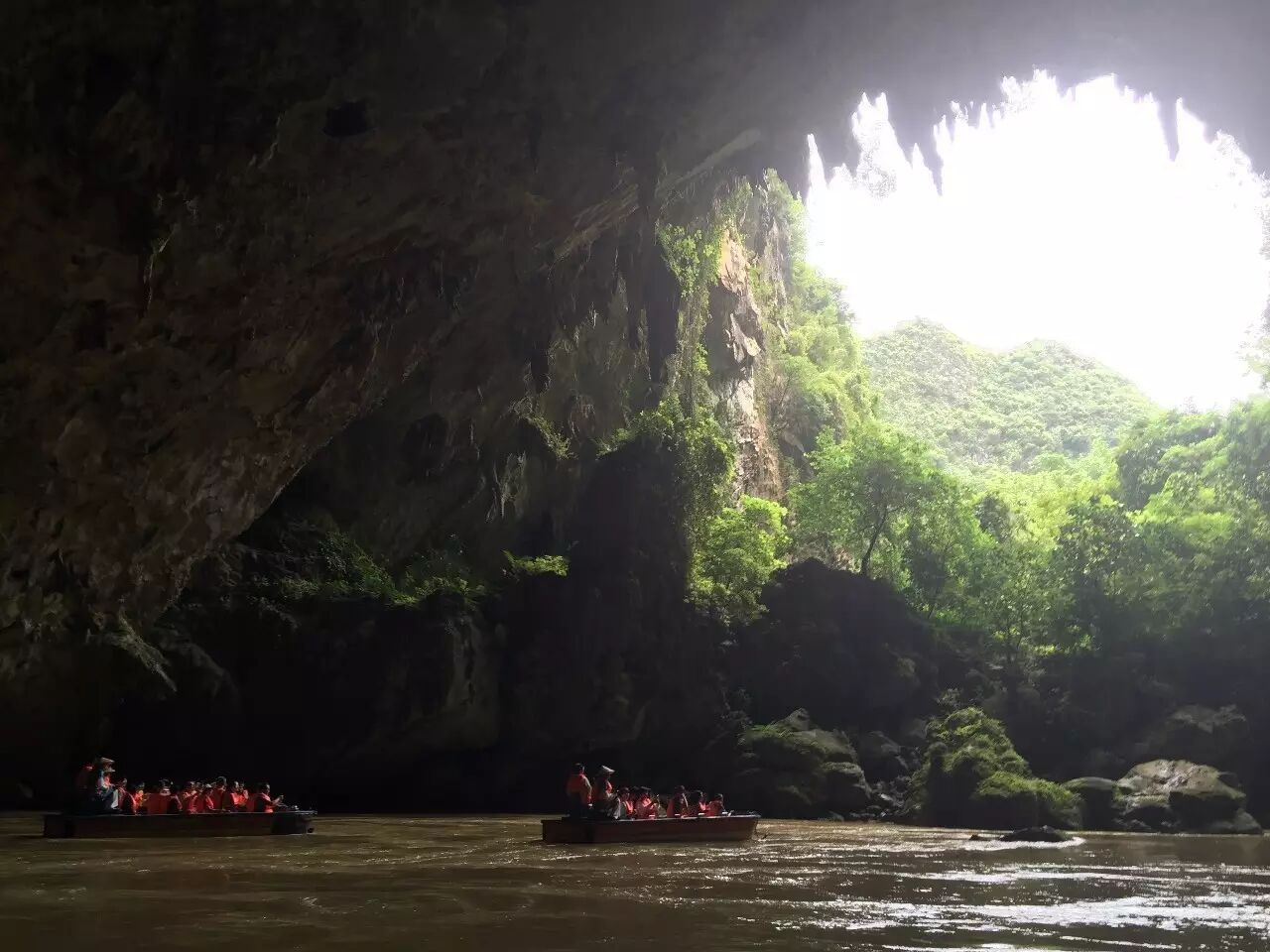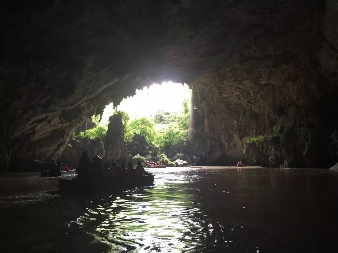 先是到了百鸟岩景区,泛舟水面,微风拂面,巴马山青水秀,极具特色的就是喀斯特地貌的溶洞。