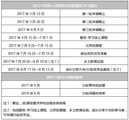 第一轮招募期刚过,面试已经开始,已提交申请的小伙伴们准备好哦!还不了解2017 PEER X 沙砾挚行伴夏服务-学习项目的盆友请看这里: