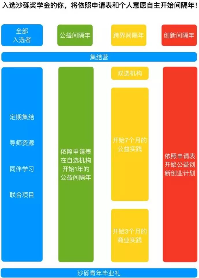 在沙砾奖学金的支持下,有三种公益间隔年的形式可选: