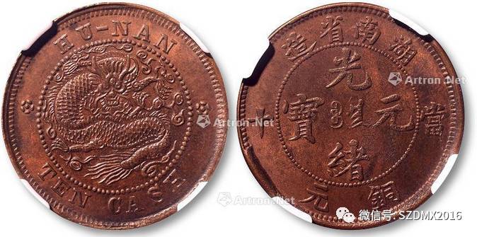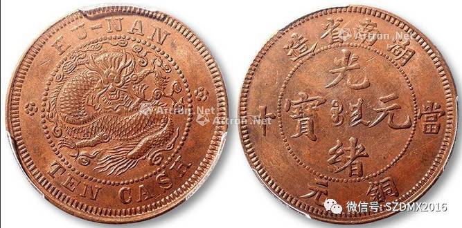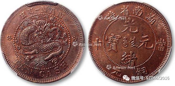 湖南省造光绪元宝当十铜元,史载“光绪元宝”当时共十九个省局铸造。,地方省所铸铜元,皆在其正面上缘镌写省名。计有:户部;北洋;湖北;江南;河南; 湖南;江西;山东;广东;清江;浙江;江苏;四川; 福建;安徽;吉林;奉天;广西;新疆;黑龙江。而宣亦艺术征集到的这枚湖北省造光绪元宝作为近代钱币中最为精美铸币之一,其确实风格独特,文化内涵丰富,是不可多得的珍稀之品。