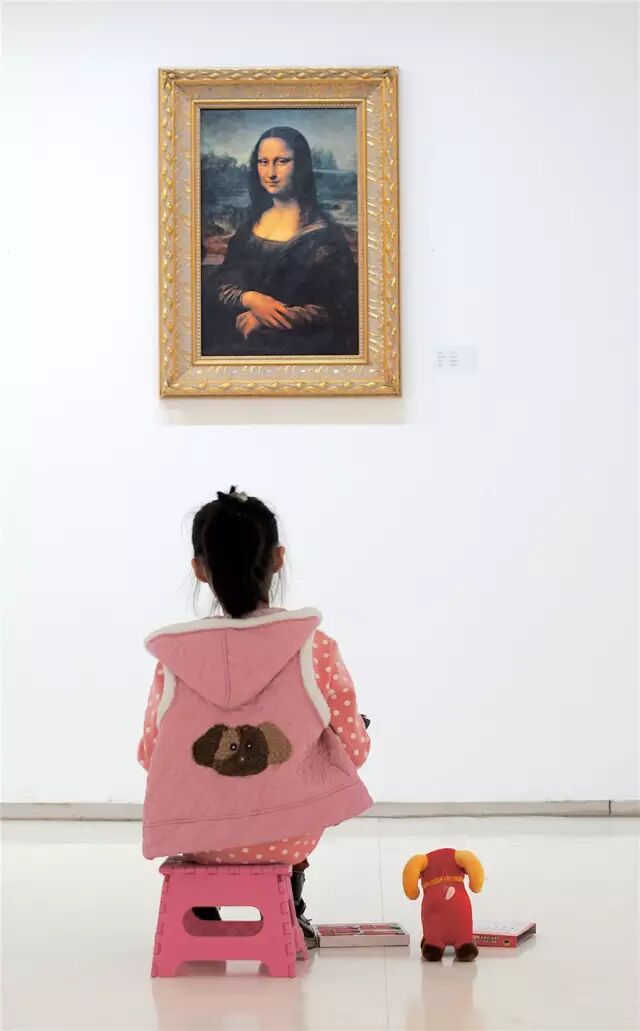 美术馆里画着蒙娜丽莎的孩子,她带着她的小羊,就像是她的朋友,在这幅世界名画面前,不知道她们将产生怎样的对话。