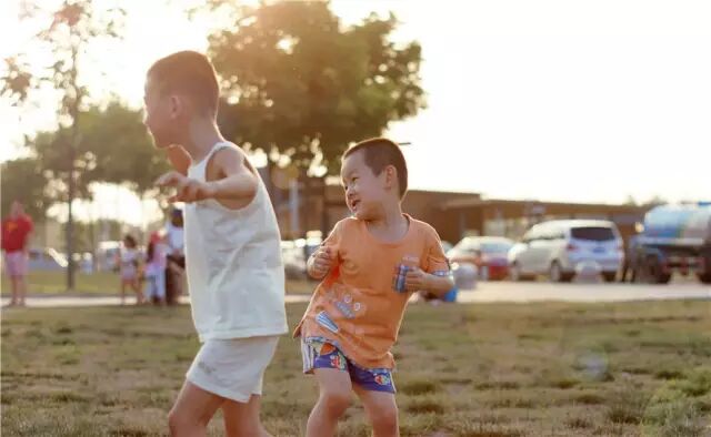 夏天里,太阳快下山的时候,孩子们在草地上捉蚂蚱,看到他们在草地上奔跑时,因为捉到了而开心的样子,快乐可以这么简单。