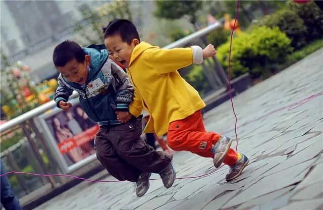 跳绳的两个小伙伴,也许他们自己都不记得跳的时候激动的模样了。