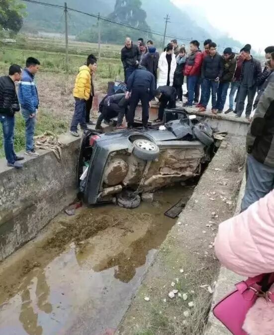 有网友爆料,称17日下午荔浦有一辆小轿车开进沟里去了,车头还钻进了桥洞!