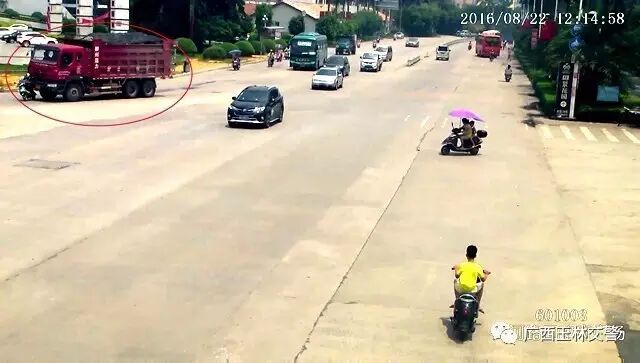2016年8月22日12时15分左右,一辆拉满煤渣的翻斗车从玉林往福绵方向行驶,至该路口处欲右转驶入天河路,与一辆同向行驶的电动自行车发生刮擦相撞,电动车及驾驶人被撞倒于翻斗车右前轮低下,至驾驶摩托车男子当场死亡。