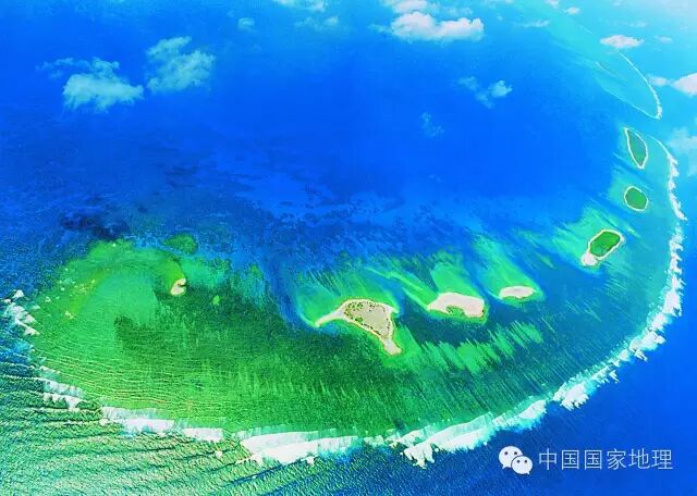 只有大自然才会有这样的杰作,西沙七连屿像一串美丽的项链,自然地铺排在蔚蓝的大海上,又像一枚张开的贝壳,裹含着7颗美丽的珍珠。
