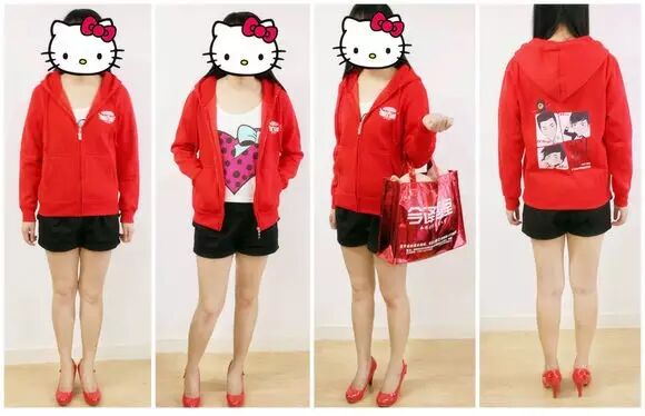 T恤和卫衣不单卖,必须整套起购,每一套会服随机附送小礼物。