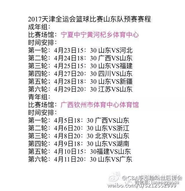 本届全运会男篮成年组的预赛将在4月23日开打,上届全运会第三名的山东男篮被分在宁夏中宁赛区,同赛区的对手有河北、四川、江苏、福建和广西,山东男篮首战将对阵河北男篮。