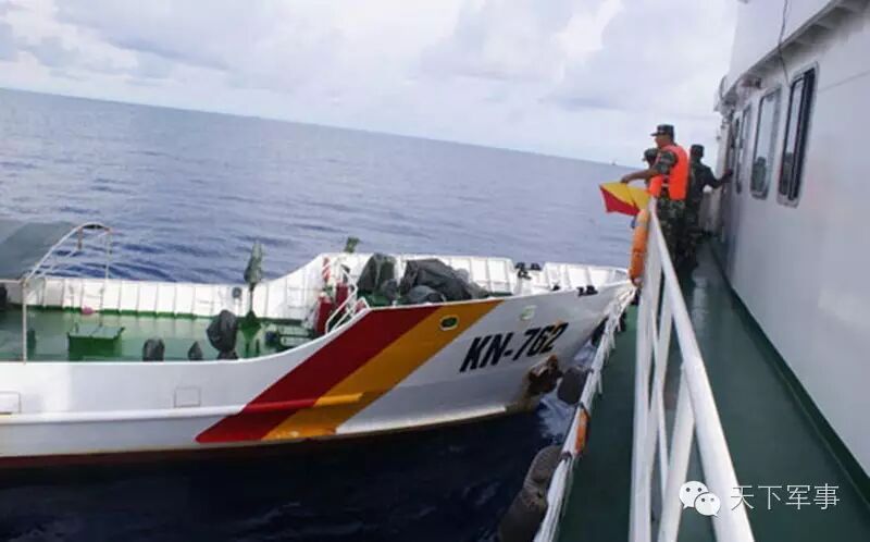 再看看对阵印尼的情况。2016年3月19日下午2点,印尼海警在我国传统海疆线内发现我国广西渔船“桂北渔10078”号后开始追逐,并开火射击。并将其非法抓扣,将8名我方渔民转移到印尼海警船上,并拖带渔船驶向纳土纳岛的基地。随后中国海警船迅速赶到。