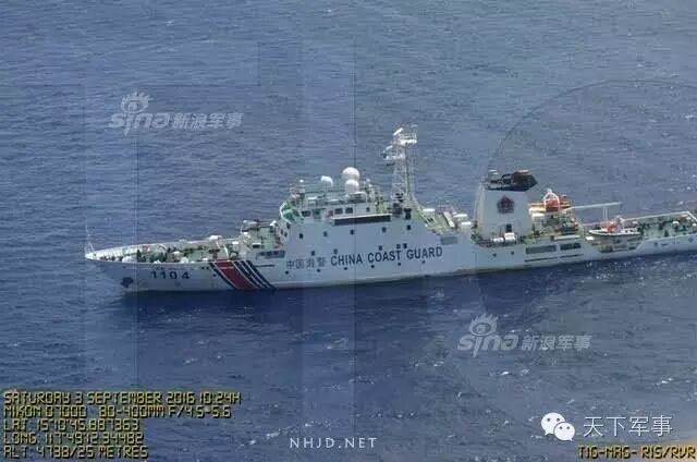 先来看看对阵菲律宾的情况。,可见的守卫黄岩岛的是中国海警1104、3063、3111船。图为菲律宾拍摄的海警1104船。海警1104隶属海警局北海分局,1680吨级,在今年3月还参加过在黄海进行的中韩联合巡逻。