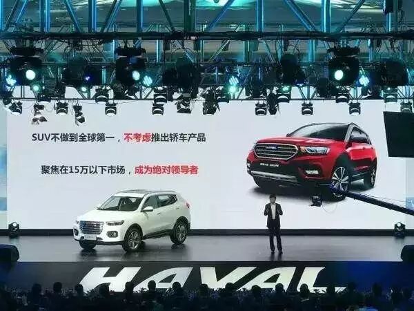 他甚至在庆典上放言,哈弗一定会做到SUV全球第一,做不到之前不会再做轿车。而且新品牌WEY的出现,不会影响哈弗,因为哈弗要在15万以下市场成为绝对领导者。