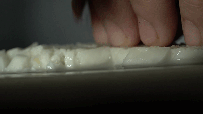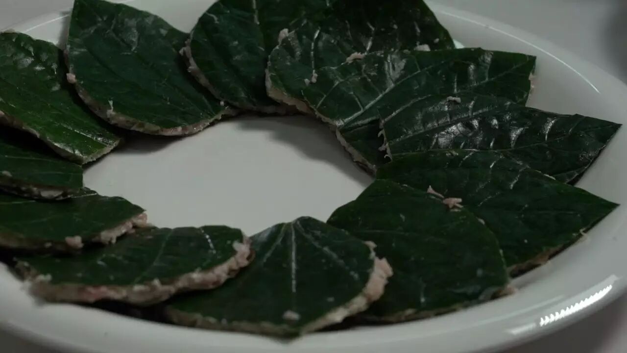 首先将土鸡整只洗净沥干待用,将猪前腿瘦肉剁成肉酱,再将冬菇、马蹄和葱姜等也切成沫,打入肉酱中,加上盐、酱油等调料,再用假娄叶子夹肉酱、剪造型做成假娄合;