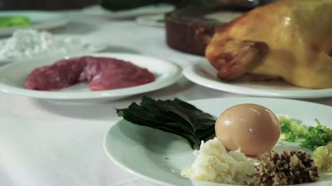 壮族是中国少数民族人口最多的一个民族,也是广西分布最广的一个少数民族。壮族的年夜饭离不开一个食材——土鸡,一道娄合拼烧鸡则是壮族年夜饭的一道特色菜。它的寓意是金鸡贺春,希望来年有个大丰收。