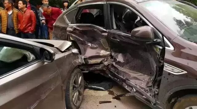 肇事车冲上湾塘路横冲上正常行驶的一辆纳智捷优6 SUV车右边,巨大冲力将越野车从右车道撞到左车道人行道边才停下,越野车前、后门被撞凹,左后轮被撞出来,车内后座一人员受伤,后被送住医院。
