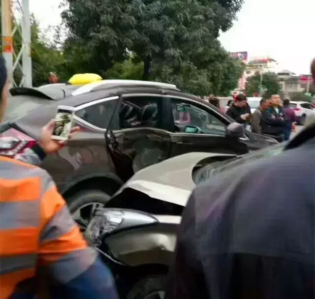 4月11日晚,柳州一名71岁的老司机在自家门口(大埔湾塘路鸟仔岭市场)驾驶小轿车操作失误,致使该车辆失控行驶约150米,造成11辆车损坏和1人受伤!
