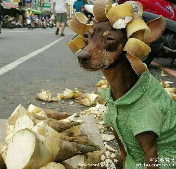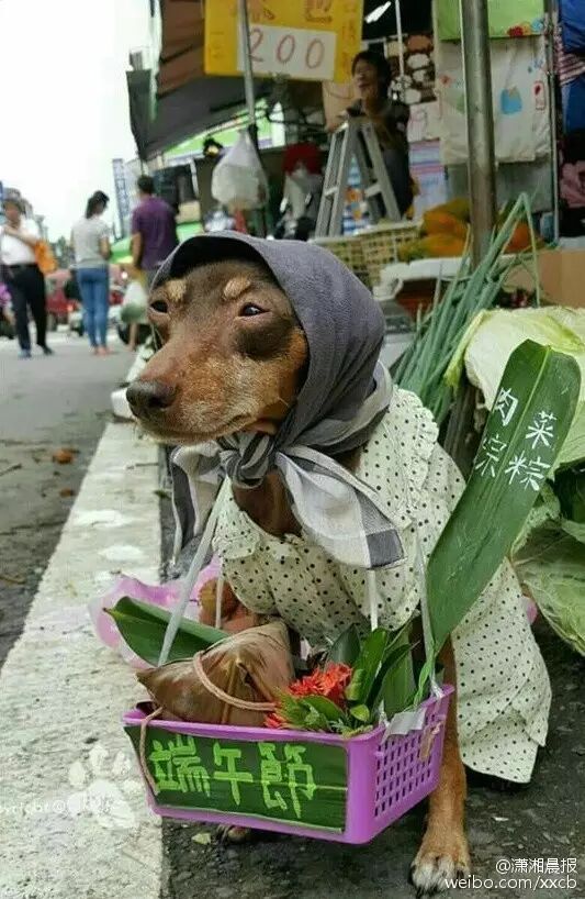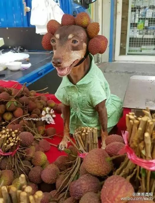 最近,有一网友在菜市场发现的超敬业狗狗,端午节的时候卖粽子,然后卖荔枝最近在卖竹笋……