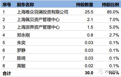公司2006年成立,共有1家全资子公司,总股本3,000万股,董事长、总经理杨晖通过唯众羽澜、派界资产间接控制公司2,700万股(占90.0%),为公司控股股东及实际控制人。