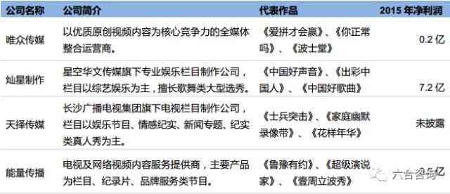 公司对行业趋势判断敏锐,率先适应互联网生态,是国内最早布局网生、综艺类型栏目和具备互联网思维的制作公司之一;在网生、网综领域快速发展,2016年上半年超50%收入来自新媒体。公司制作的网络视频互动真人秀《互联网的百万富翁》,开互联网直播互动真人秀风气之先;拥有互联网现象级节目《你正常吗》,第一季上映仅2个月点击量超3.3亿次。公司积极布局VR领域,设立全资子公司唯众旌(jīng)云负责VR视频业务。