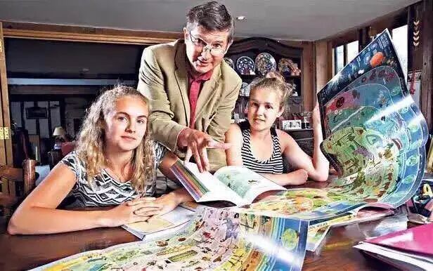 他还是两个女儿的父亲,在大女儿玛蒂尔达8岁时,他发现女儿厌学,对学校失去了兴趣,于是让女儿退学回家,自己教,并创作了自学教材—《墙书》。