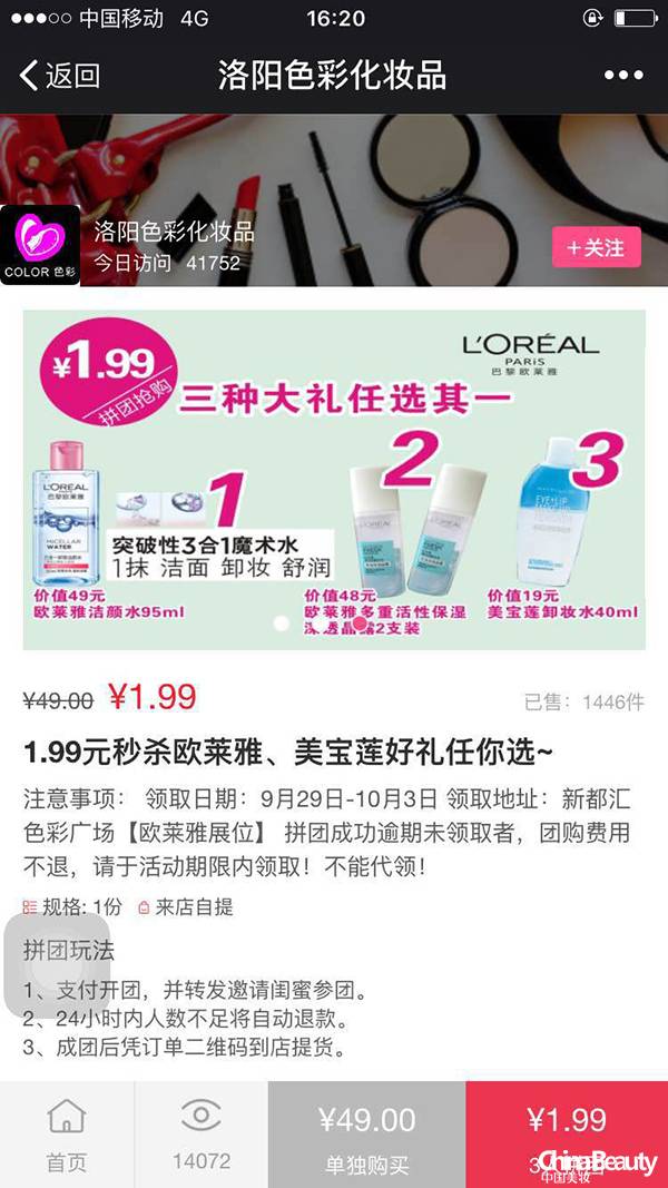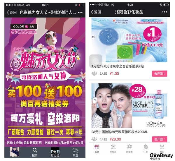 洛阳色彩原本就有40多万的会员粉丝,在洛阳色彩化妆品的微店可以看到,这样极具诱惑力的拼团活动,每天店内的人流量保持在4—5万之间。洛阳色彩采购总监孔强东介绍说,“那条活动信息的阅读量也会超过10万,而洛阳色彩本身就有40多万的会员粉丝,通过这样的活动不仅激活了会员粉丝,还将顾客引流到了活动现场,引流到了店里。”