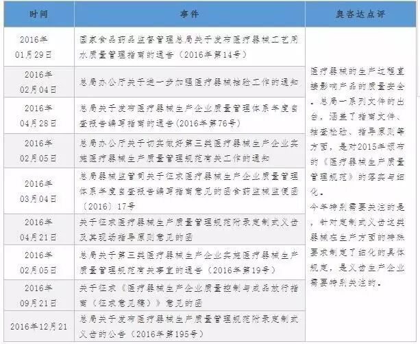 表10:2016CFDA发布的医疗器械GMP相关事件