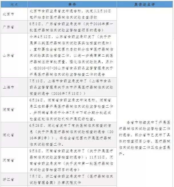 2016年4月12日 CFDA发布了《关于征求医疗器械临床试验现场检查程序和检查要点意见的通知》,。