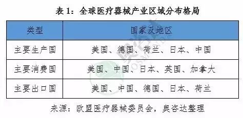 全球医疗器械行业集中度较高,欧盟医疗器械委员会统计数据显示,美国、欧盟、日本共占据全球医疗器械市场超八成的份额。其中,美国是全球最大的医疗器械生产国和消费国,消费量占全球的40%以上。目前排名前25位的医疗器械公司的销售额合计占全球医疗器械总销售额的60%。