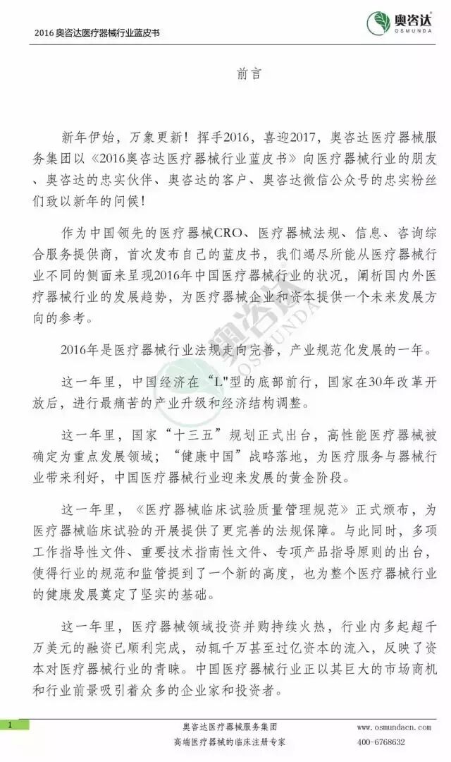 2016年是中国医疗器械临床试验管理取得重要进展的一年。《医疗器械临床试验质量管理规范》的颁布,为医疗器械临床试验的开展提供了法规保障;全国各省市陆续开展医疗器械临床试验监督检查工作,。通过医疗器械临床试验的GCP管理,短期内对参与临床试验的各方都造成了一定的压力,但从长远看,提升行业要求、,有利于提高我国医疗器械临床试验的质量。同时,一些管理规范、质量控制体系良好的龙头企业有望通过这种优胜劣汰获取更大的市场份额,有利于提高行业集中度,最终促进行业的健康发展。
