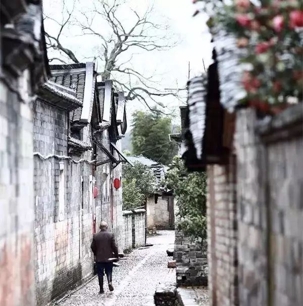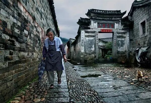 古道曲折,巷道相通,鸡犬相闻,村民悠然的踱步其间。