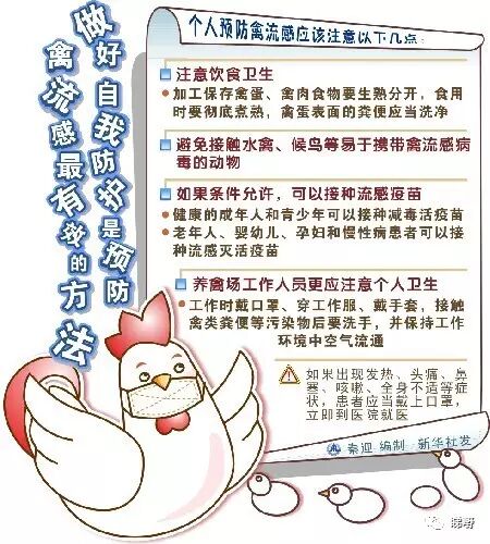 平时我们在烹饪这些禽类或者煮东西的时候,注意要煮熟、煮透,就可以起到预防的作用,我们平时日常接触,如果去到活禽市场,回来要勤洗手,手部的卫生这些要注意,另外,如果出现发热、周身乏力、咳嗽、周身关节酸疼这种流感的症状,要及时去医院就医。