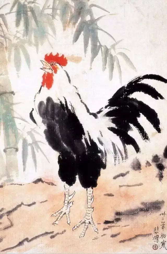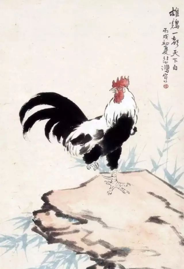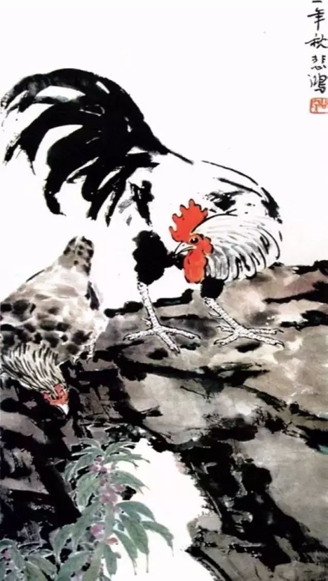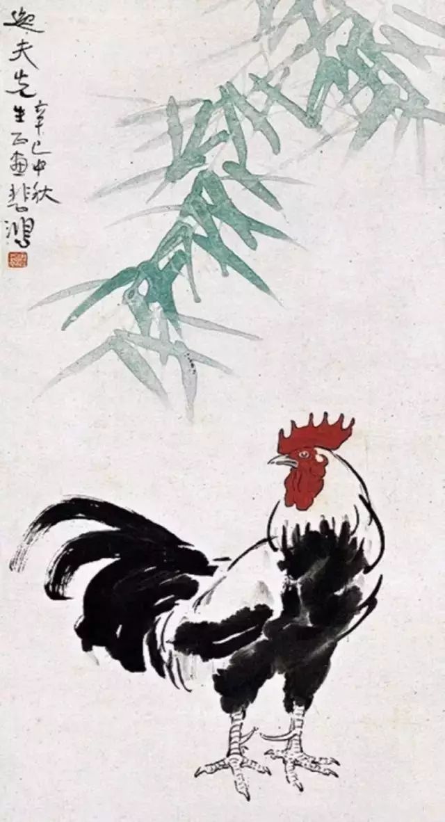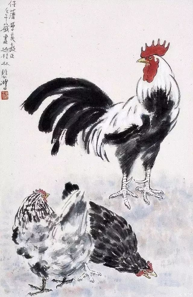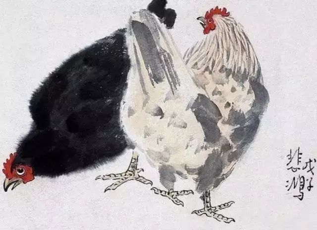 众所周知,徐悲鸿对画马情有独钟。他笔下的马,神骏气昂,奋发感人,千古叫绝。但许多人未必知道,徐悲鸿画鸡,也是一绝。