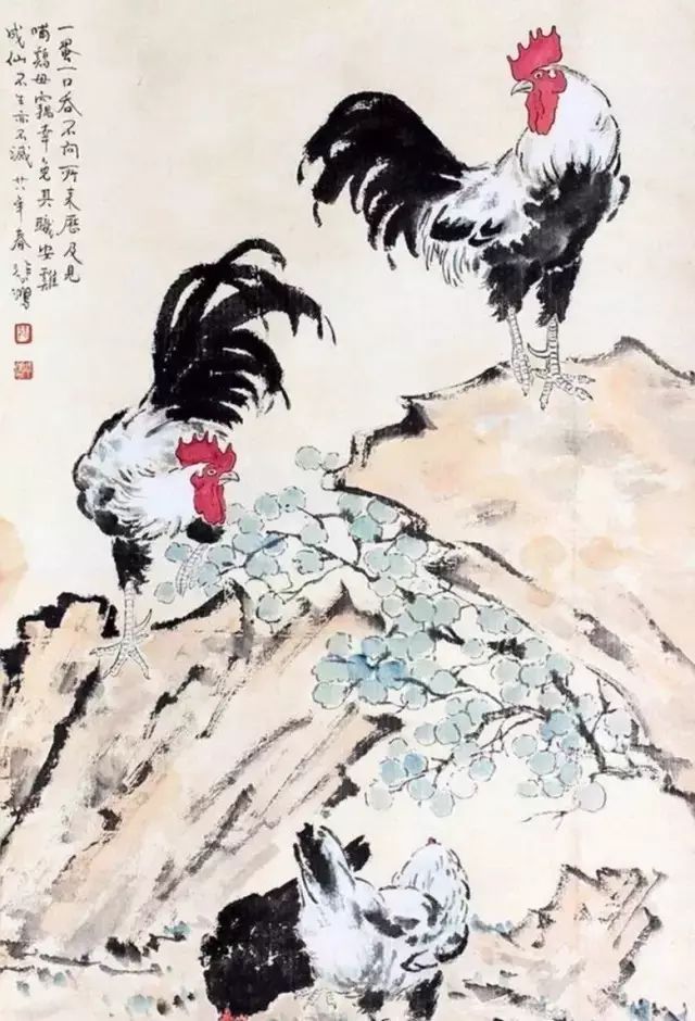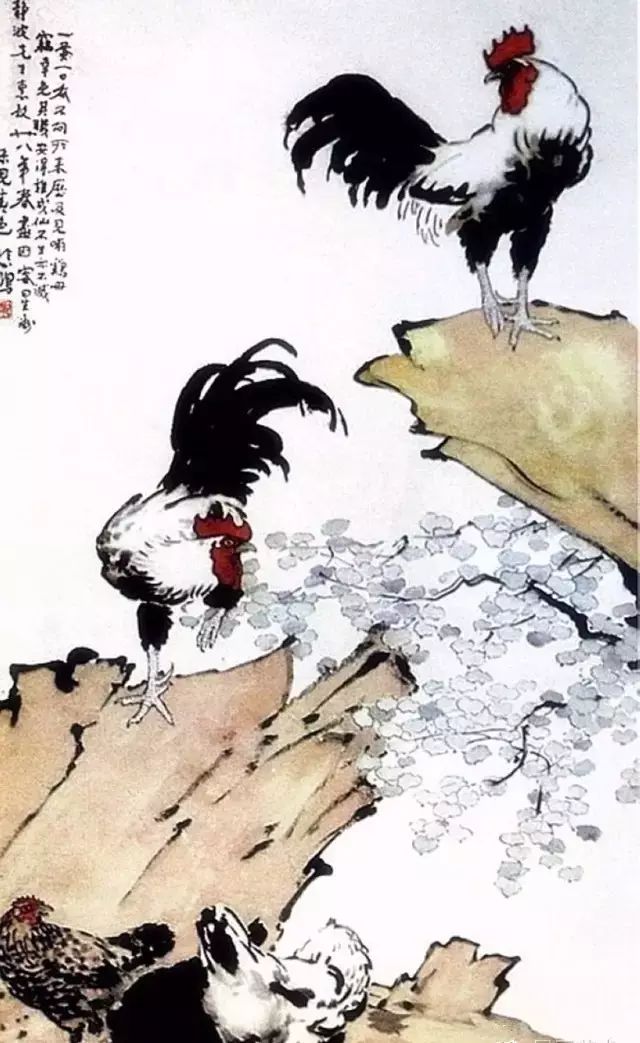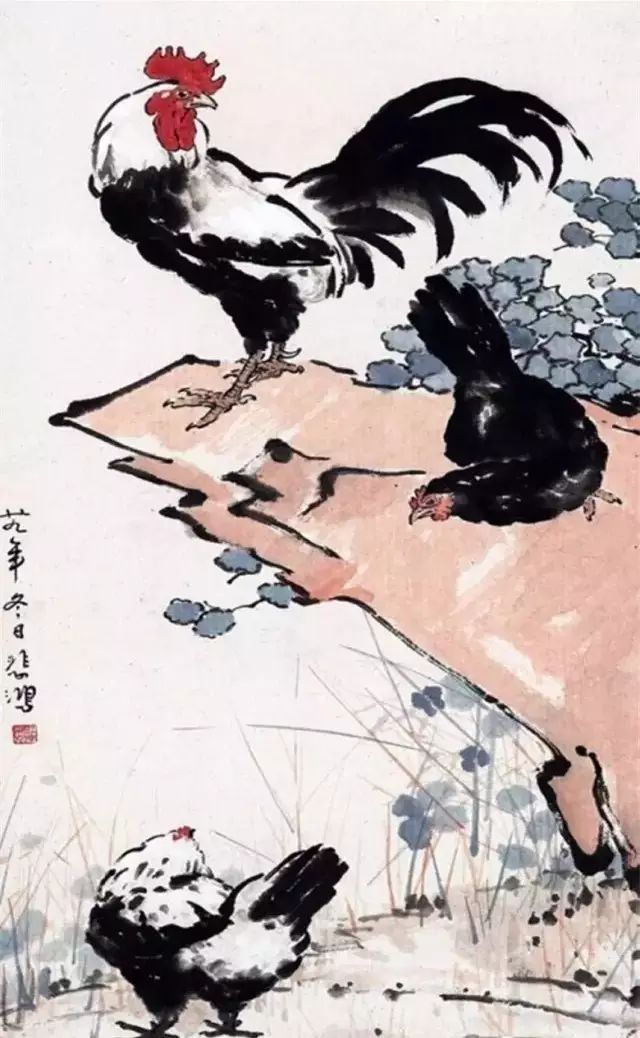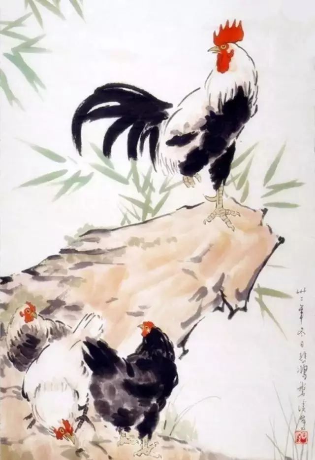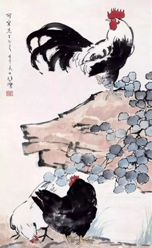 众所周知,徐悲鸿对画马情有独钟。他笔下的马,神骏气昂,奋发感人,千古叫绝。但许多人未必知道,徐悲鸿画鸡,也是一绝。