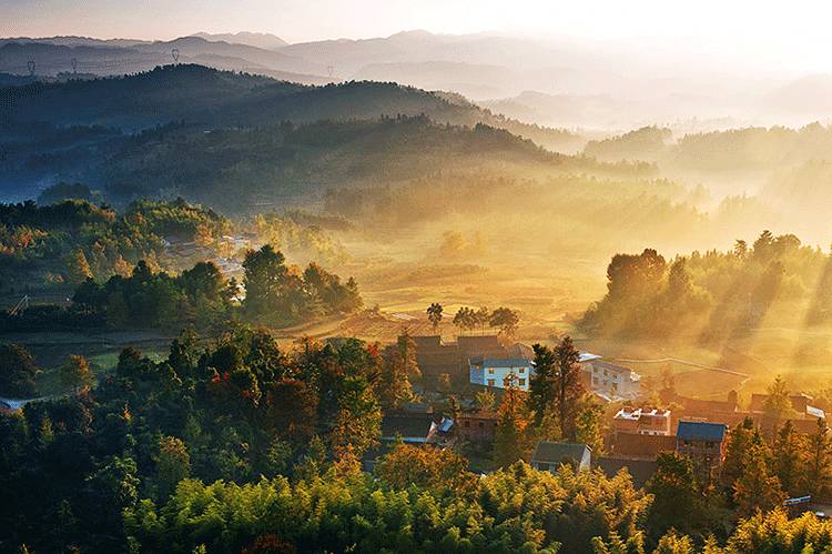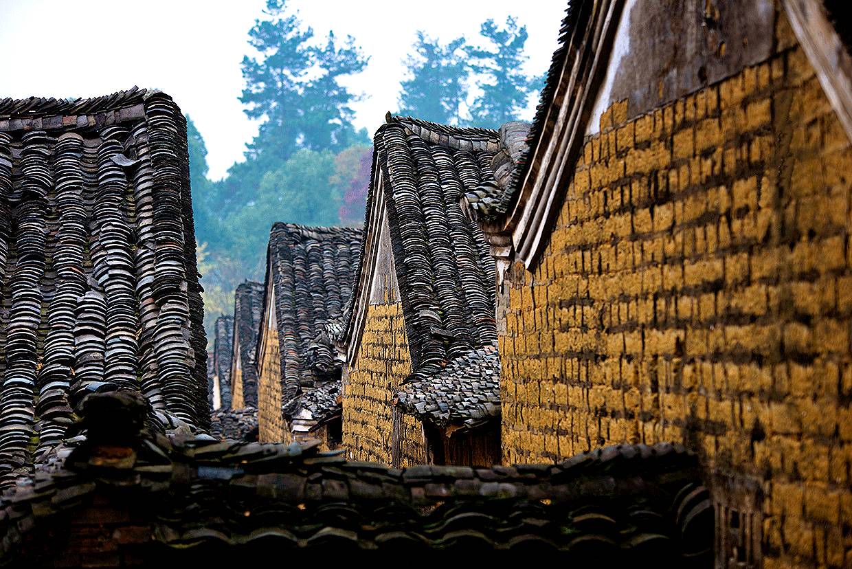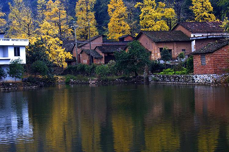 我是在广西桂林的东南部,找到了照片里的地方。它藏在偏僻的大山深处,金黄的银杏树裹着小小的村庄,黝黑的瓦片罩着矮矮的平房,总之那气质难以形容,就是一种朴实的滋味里悄然盛放出一丝蜜意。
