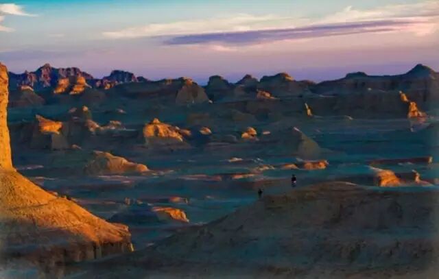 乌尔禾魔鬼城。天边那一抹诡异的紫色,映射着魔鬼城金色的光斑,暮色降临,一个人走在“城”里,一阵疾风吹过,还真的会有那么点“毛骨悚然”的感觉。