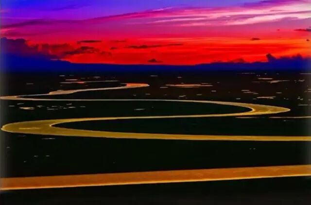 绚丽多彩的晚霞映射在额尔齐斯河,这是我国唯一一条自东向西流的——流向北冰洋的河流。